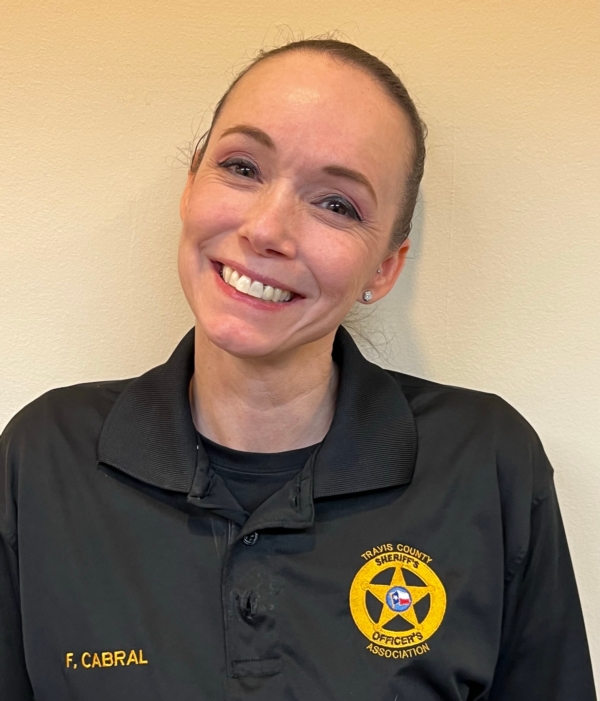 Felicia Cabral is a Senior Corrections Officer with 20 years with Travis County Sheriff’s Office and has always been a proud member of TCSOA (Travis County Sheriff Officers Association) and has served on the board for seven years of those years. She has been assigned TCJ, TCCC Building 3 and is currently assigned to Central Booking C-Shift. Felicia is inspired daily by her husband and their two kids. They always have a movie night where her and her husband expose their kids to older movies “classics” or have music night where they try to introduce older music from all genres. In her free time, Felicia likes to craft, plan parties, walk her two dogs and play video games with her husband.